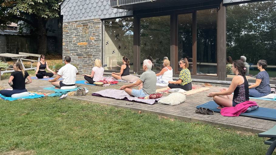 Le yoga ne se résume pas à une posture sur le tapis, il combine des exercices physiques (postures et étirements), des exercices de respiration et de méditation.
